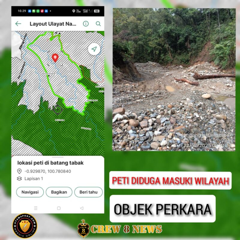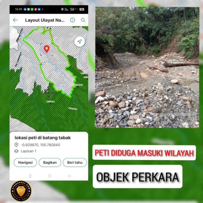 Sirukam, Kabupaten Solok,- Aktivitas pertambangan emas tanpa izin (PETI) di Sumatera Barat kembali menjadi sorotan. Tidak hanya merambah kawasan hutan negara, PETI kini diduga telah menyasar tanah sengketa yang berstatus objek perkara, seperti yang terjadi di kawasan Batang Tabak, Nagari Sirukam, Kabupaten Solok.