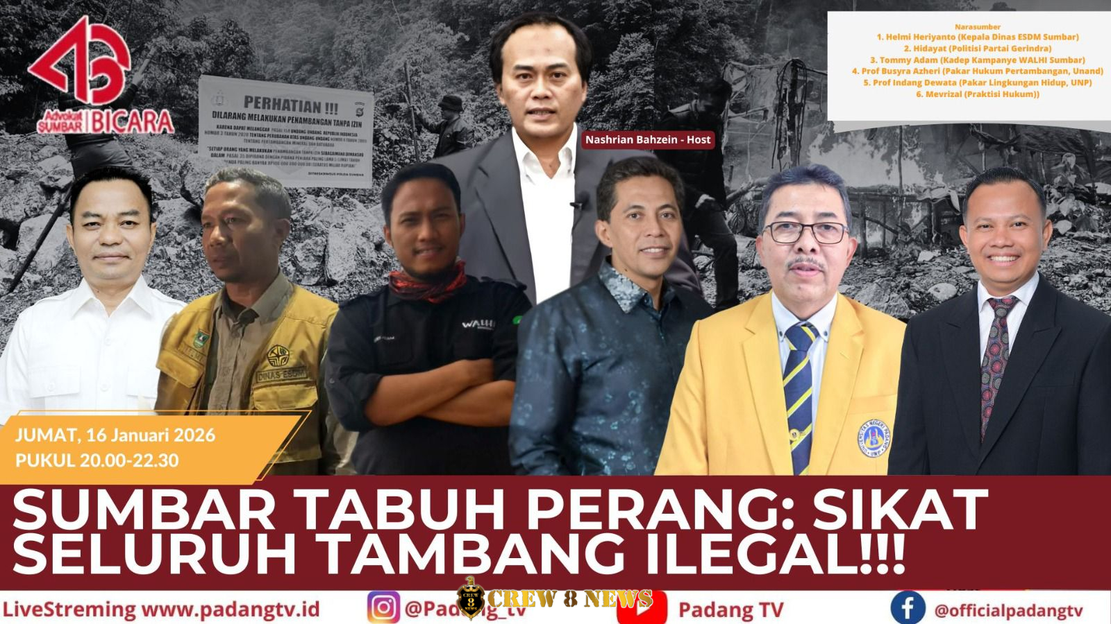 “Ini langkah konkret yang patut diapresiasi. PETI sudah lama menjadi masalah serius, merusak lingkungan dan memicu persoalan sosial. Sudah saatnya ditangani secara tegas,” ujar Hidayat dalam salah satu sesi diskusi Advokat Sumbar bicara Padang TV (16/1)