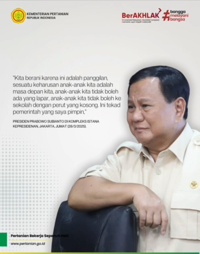 Jakarta, 28 Maret 2025.Kementan menyebut MBG merupakan langkah cepat membangun generasi emas Indonesia yang sehat, produktif, dan berdaya, sekaligus menjadi salah satu strategi jangka panjang peningkatan kualitas sumber daya manusia dan ketahanan pangan nasional.