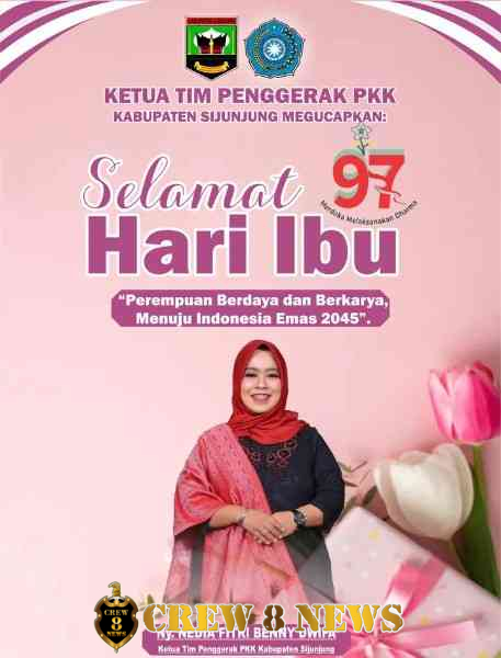 SIJUNJUNG — Ketua Tim Penggerak PKK Kabupaten Sijunjung, Ny. Nedia Fitri Benny Dwifa, menyampaikan ucapan Selamat Hari Ibu ke-97 kepada seluruh perempuan hebat di Kabupaten Sijunjung dan di seluruh Indonesia.