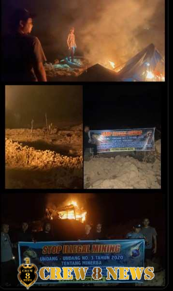 “Di lokasi, kami menemukan bekas galian tambang emas, tenda yang masih berdiri, peralatan memasak, sisa pakaian, jeriken bekas bahan bakar, serta sejumlah perlengkapan lain yang diduga digunakan untuk aktivitas illegal mining,” ujar Ipda Ropi Arpindo.