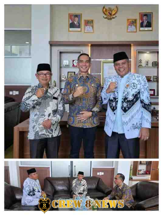 Arosuka, Crew8 News – Sekretaris Daerah Kabupaten Solok, Medison, menerima kunjungan Ketua Persatuan Guru Republik Indonesia (PGRI) Kabupaten Solok, Yongkerman, S.Pd., M.M., bersama Ketua Dewan Pendidikan, Zulfadli, S.Pd., M.M., pada Jumat (19/9/2025) di ruang kerjanya, Arosuka. Pertemuan ini membahas strategi peningkatan mutu pendidikan, dengan menekankan optimalisasi pemanfaatan Bantuan Operasional Sekolah (BOS).