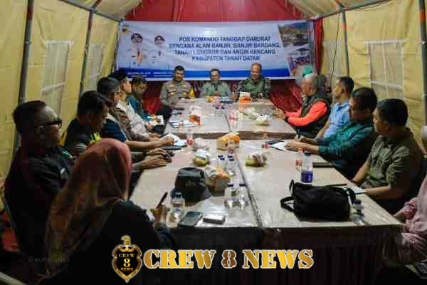 Batu Taba, Tanah Datar ,- Bupati Tanah Datar Eka Putra SE.MM memimpin rapat evaluasi penanganan bencana yang digelar di Posko Utama Bantuan di Nagari Batu Taba, Kecamatan Batipuh Selatan, Kamis (4/12/2025) malam. Rapat tersebut digelar untuk memastikan seluruh perangkat pemerintah bergerak cepat dan terkoordinasi dalam mengantisipasi dampak bencana banjir bandang dan longsor yang melanda sejumlah wilayah.