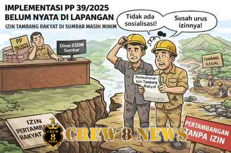 PADANG ,- Implementasi kebijakan pemerintah pusat dalam menata aktivitas pertambangan rakyat melalui skema Wilayah Pertambangan Rakyat (WPR) dan Izin Pertambangan Rakyat (IPR) di Provinsi Sumatera Barat dinilai belum berjalan sebanding dengan semangat regulasi yang diatur dalam Peraturan Pemerintah (PP) Nomor 39 Tahun 2025 tentang Pelaksanaan Kegiatan Usaha Pertambangan Mineral dan Batubara.