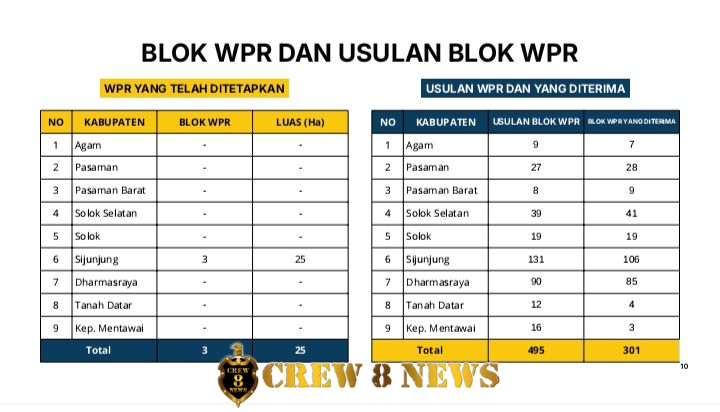 Berdasarkan data program percepatan IPR di Sumatera Barat, dari 495 blok WPR yang diusulkan oleh pemerintah kabupaten dan kota, hanya 301 blok yang disetujui untuk diproses lebih lanjut.
