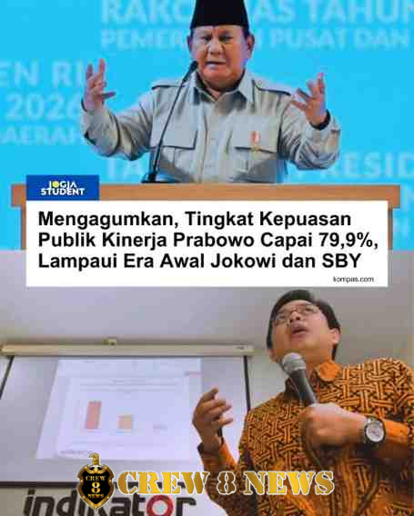 JAKARTA ,- Hasil survei nasional Indikator Politik Indonesia menunjukkan tingkat kepuasan publik terhadap kinerja Presiden Prabowo Subianto mencapai 79,9 persen setelah 17 bulan memimpin pemerintahan. Angka tersebut dinilai sangat tinggi untuk ukuran approval rating presiden pada fase awal masa jabatan.