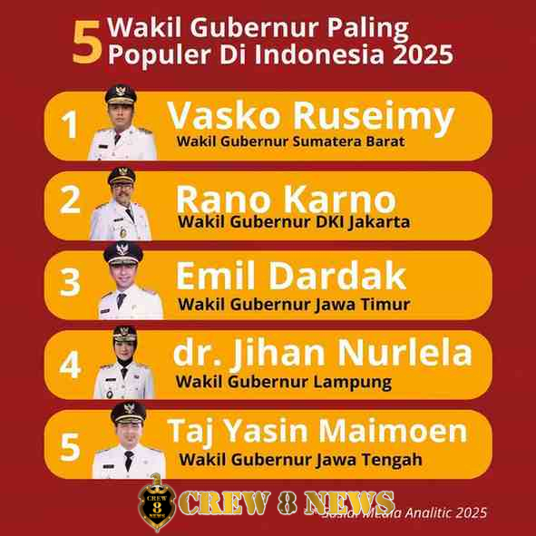 Crew8 News Jakarta, – Di tengah derasnya arus informasi digital, tidak semua pejabat daerah mampu menempatkan diri sebagai figur yang dekat dengan rakyat sekaligus piawai mengelola komunikasi publik. Namun, tahun 2025 ini, sebuah riset social media analytic mengukuhkan nama Vasko Ruseimy, Wakil Gubernur Sumatera Barat, sebagai wakil gubernur paling populer di Indonesia.