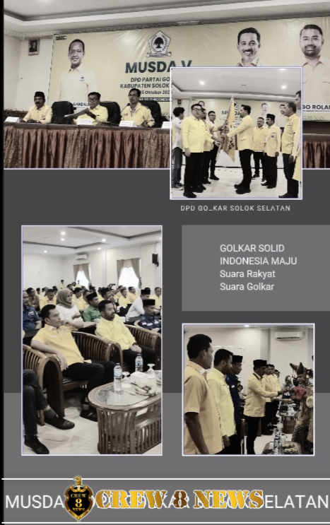 Musda V DPD Partai Golkar Solok Selatan mengusung tema “Golkar Solid, Indonesia Maju”, menandai semangat pembaharuan dan regenerasi kepemimpinan partai berlambang pohon beringin di wilayah paling selatan Sumatera Barat itu.